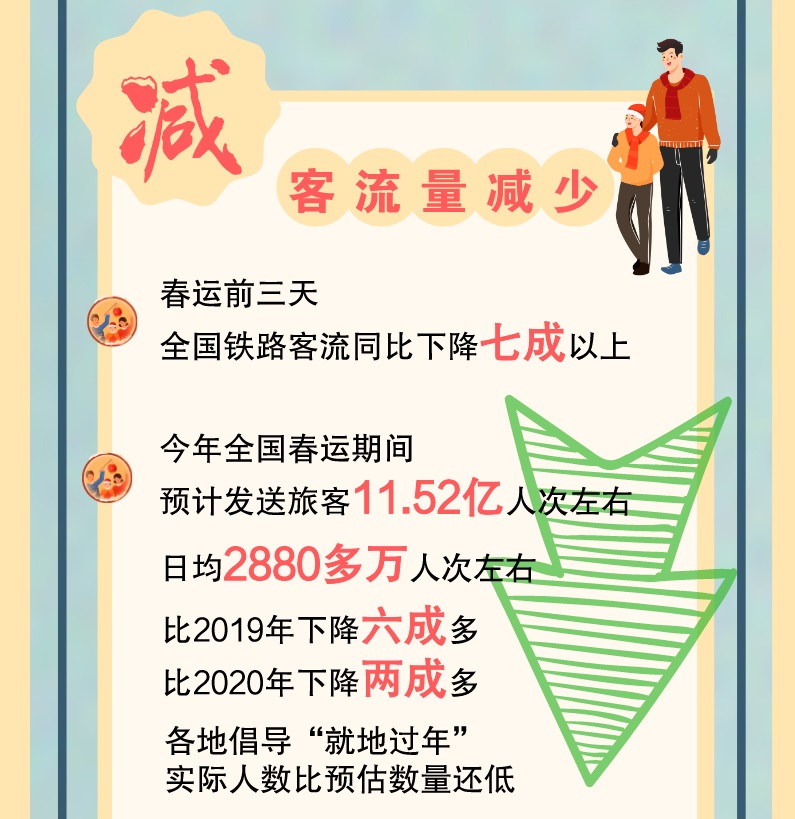 與往年相比,2021年春運(yùn)呈現(xiàn)出“減”與“防”的新特點(diǎn)。