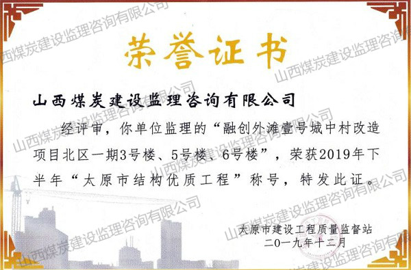 公司監(jiān)理工程喜獲山西省和太原市結(jié)構(gòu)優(yōu)質(zhì)工程獎(jiǎng)