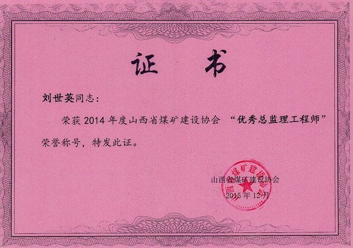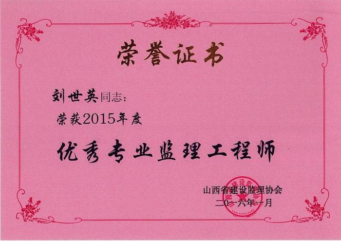 劉世英個(gè)人榮譽(yù)