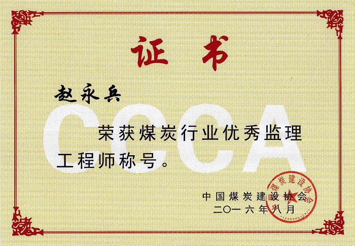 趙永兵個人榮譽