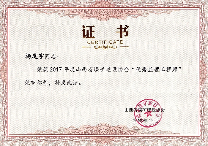 楊庭宇個人榮譽(yù)
